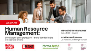 “Human Resource Management: l’evoluzione delle professioni – trend e sfide nell’era del capitale umano” Martedì 16 dicembre 2025, dalle 11:00. Un’occasione per esplorare